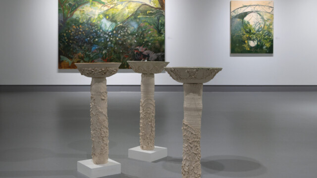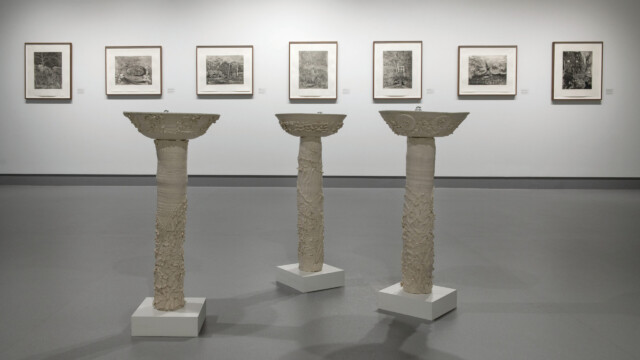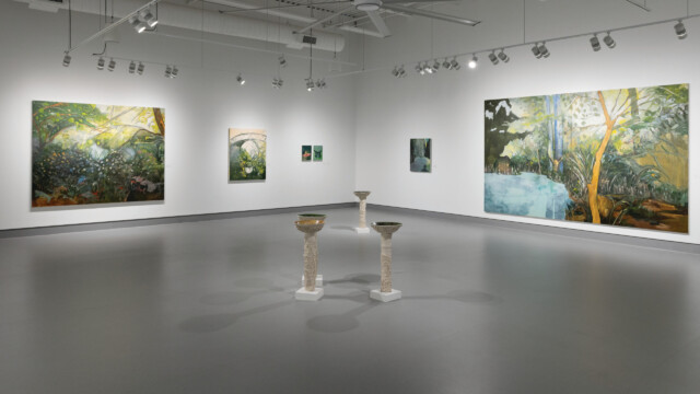 Born in Nigeria and based in Toronto, Emmanuel Osahor’s artwork engages with beauty as a necessity for survival and a precursor to thriving. For What we tend, the artist depicts gardens as carefully considered and intricate sanctuaries. His paintings and etchings embody a collage-like sensibility, drawing from various sources to create new yet convincing garden settings. Also featured are recent ceramic fountains, which moves the exhibition toward the immersive.