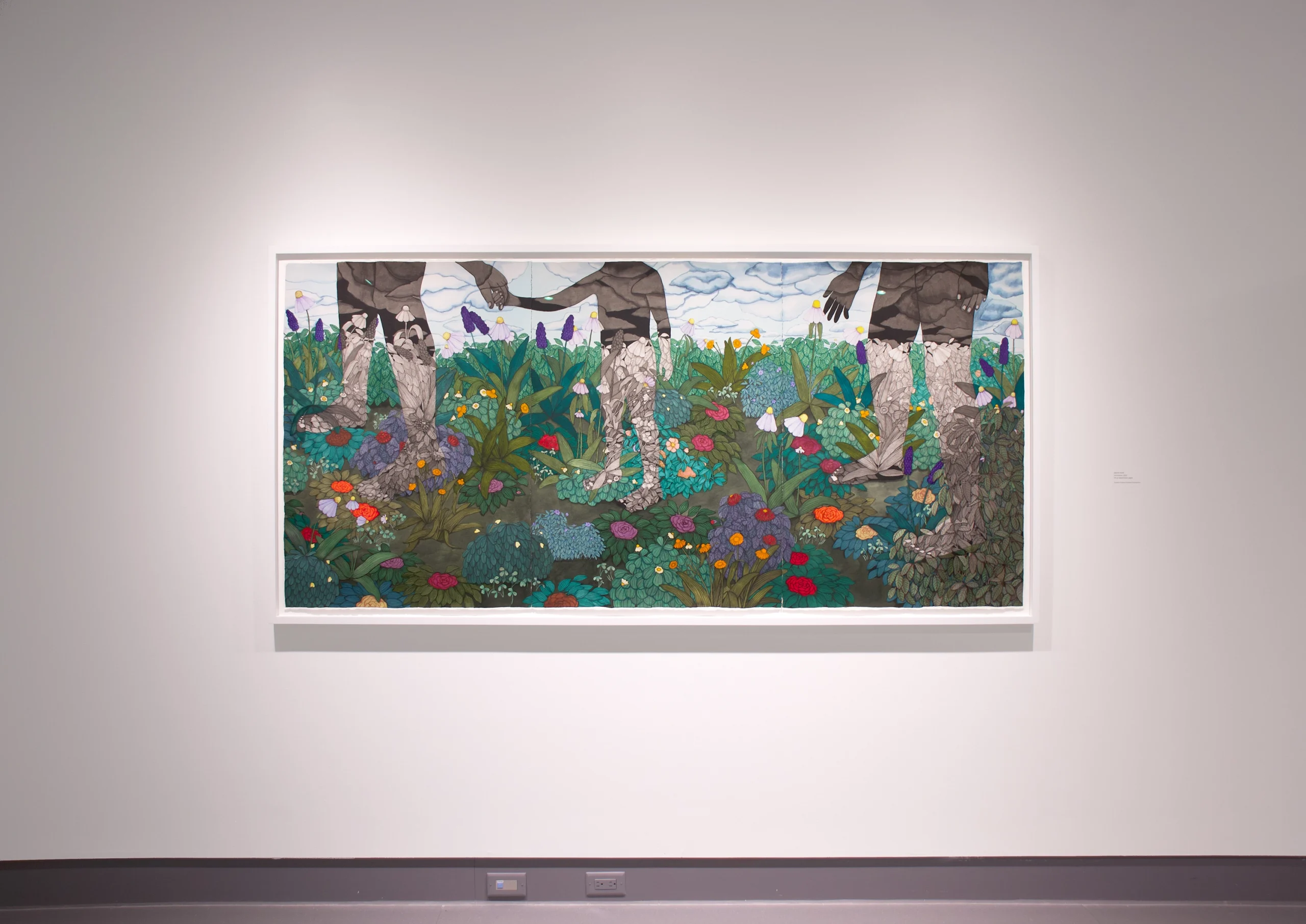 This exhibition features elaborate, large-scale ink paintings exploring the human relationship to nature. Visitors will find human figures camouflaged within the richly detailed images of plants and flowers familiar to the Stouffville area. Stanzie Tooth’s work evokes a direct connection with the land, which is rapidly shrinking in our increasingly urbanized environments.