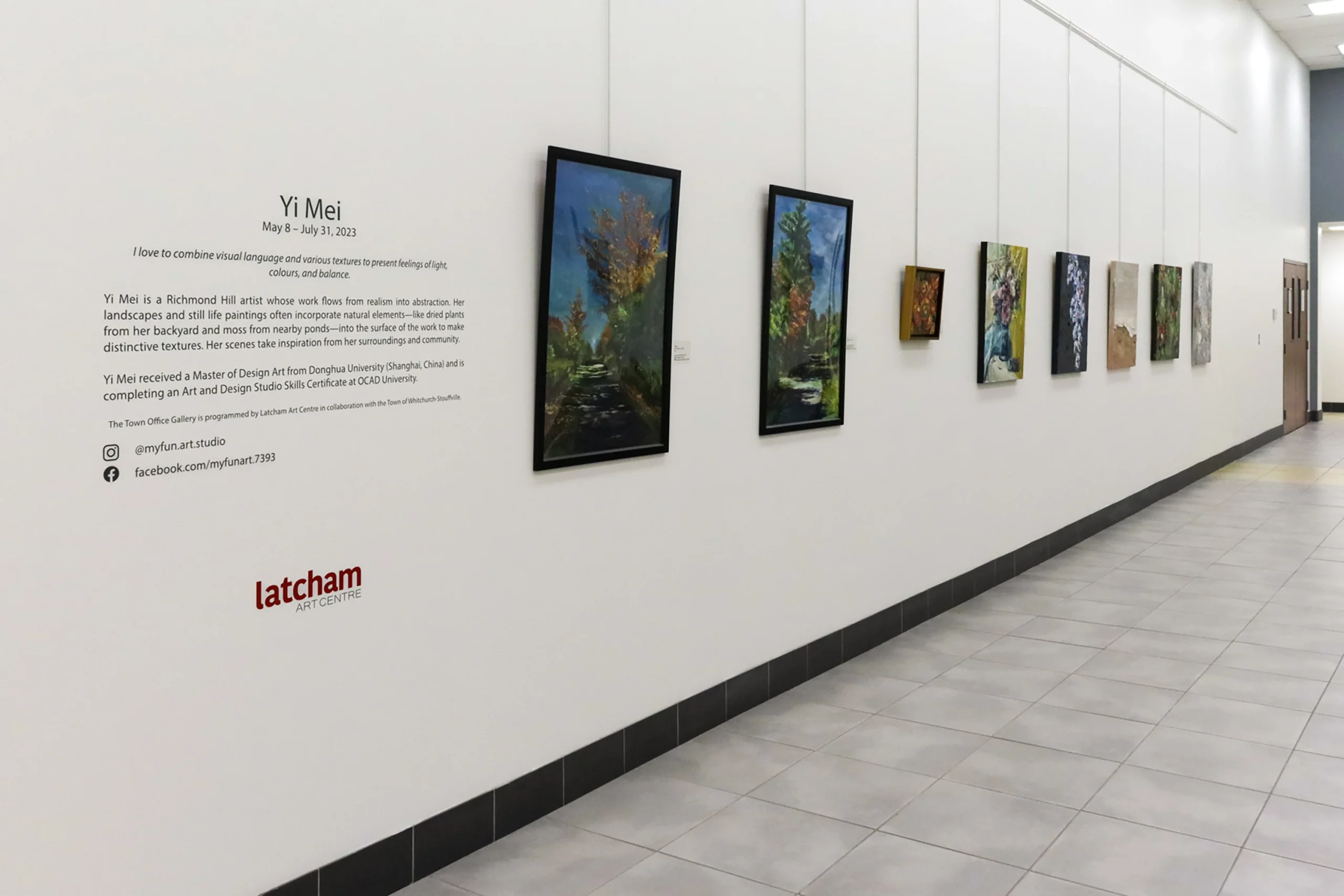 Yi Mei is a Richmond Hill artist whose work flows from realism into abstraction. Her landscapes and still life paintings often incorporate natural elements—like dried plants from her backyard and moss from nearby ponds—into the surface of the work to make distinctive textures. Her scenes take inspiration from her surroundings and community.