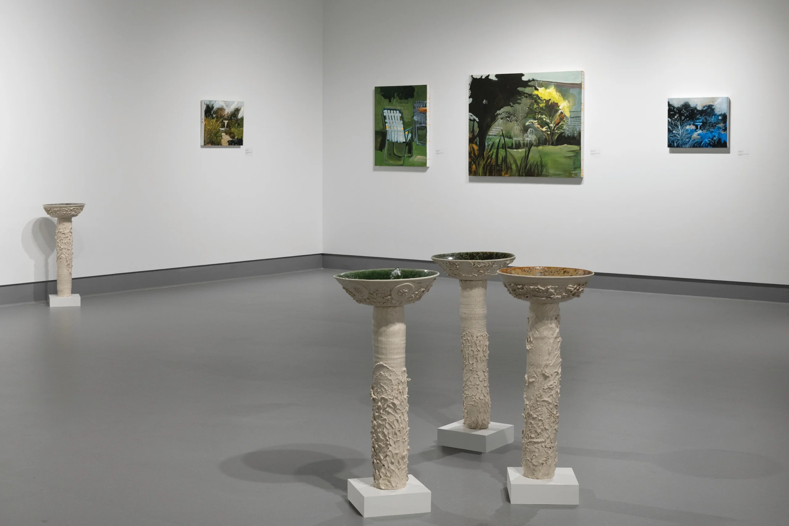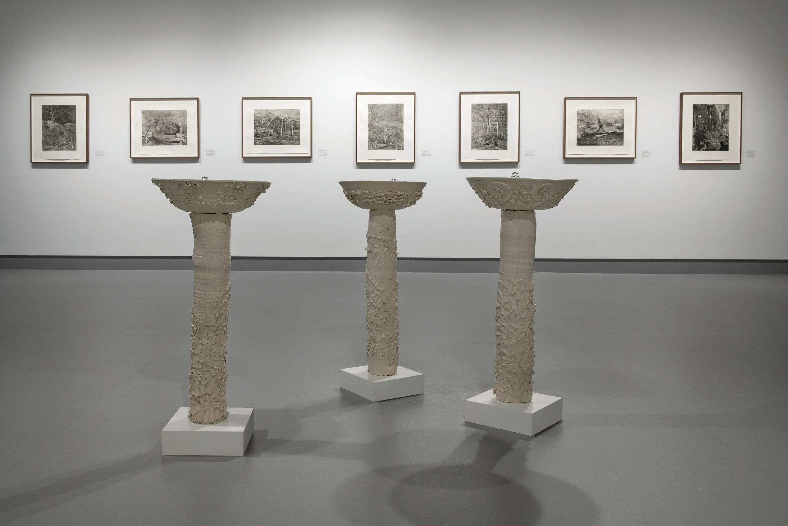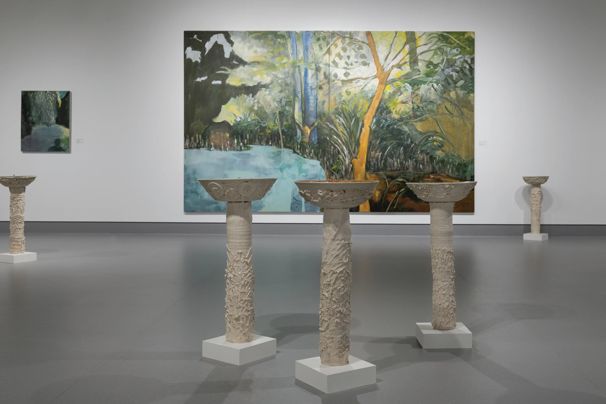 Né au Nigéria et installé à Toronto, l'œuvre d'Emmanuel Osahor explore la beauté comme une nécessité pour la survie et un préalable à l'épanouissement. Ce que nous avons tendance à, L'artiste représente les jardins comme des sanctuaires soigneusement conçus et complexes. Ses peintures et gravures témoignent d'une sensibilité proche du collage, puisant dans diverses sources pour créer des paysages de jardin à la fois inédits et saisissants. L'exposition présente également des fontaines en céramique récentes, conférant à l'ensemble une dimension immersive.