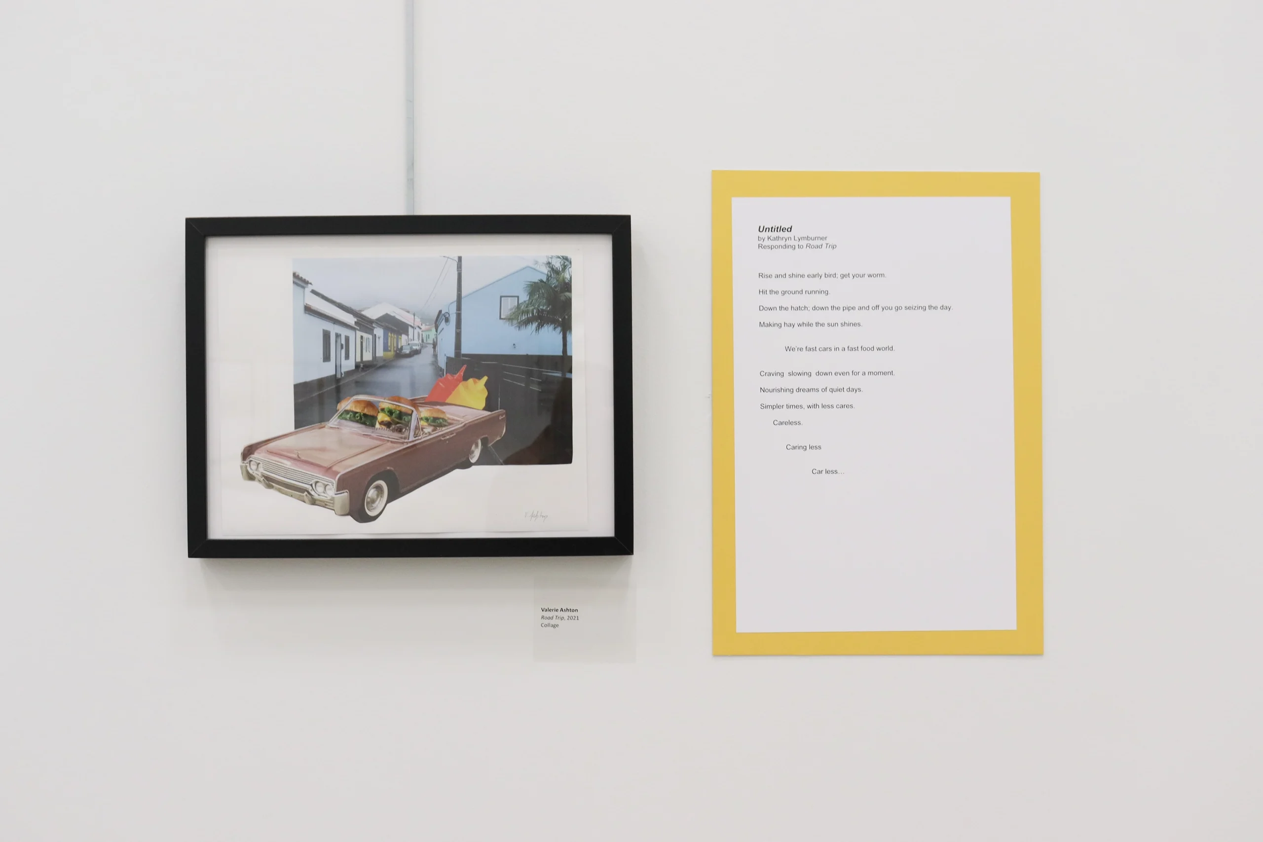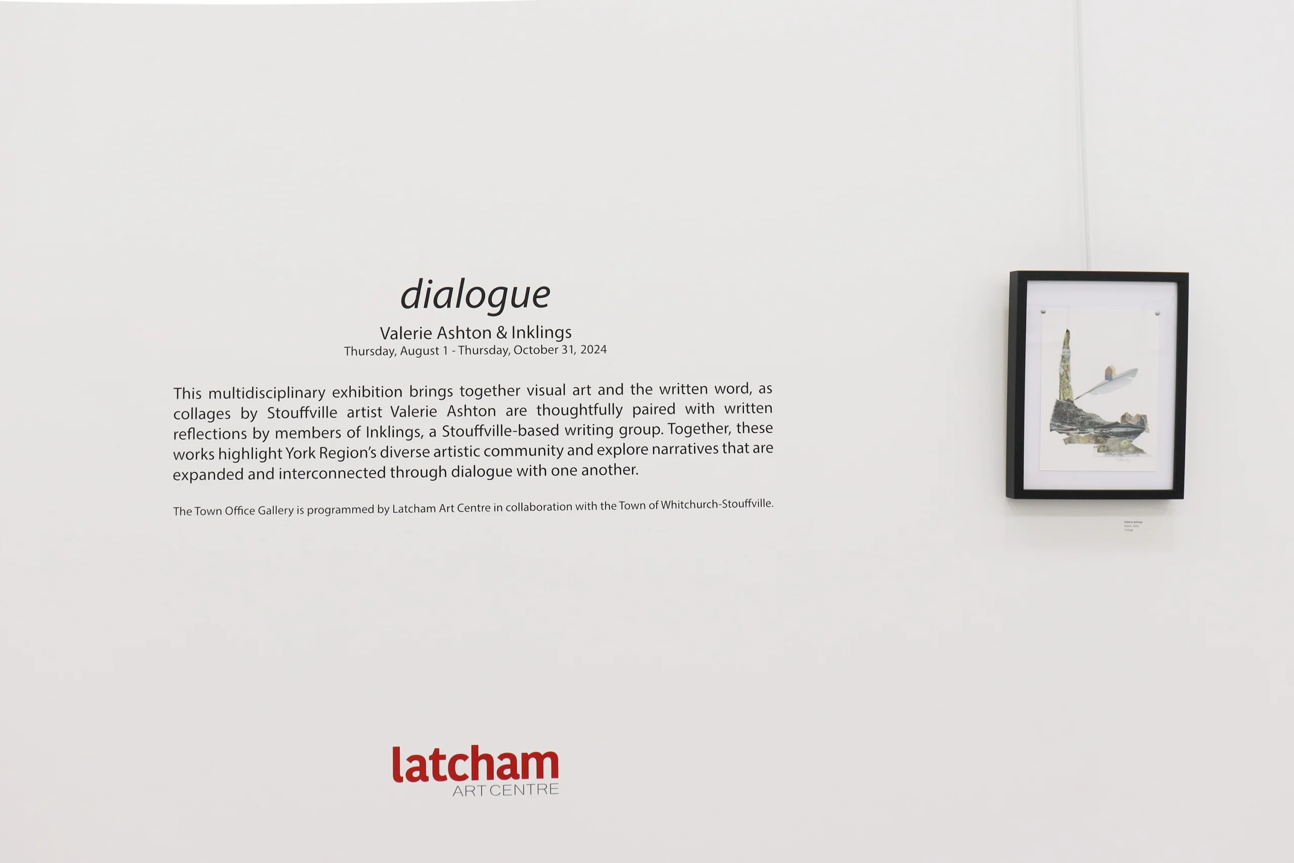 Cette exposition multidisciplinaire réunit les arts visuels et l'écriture : les collages de Valerie Ashton sont judicieusement associés aux réflexions écrites des membres d'Inklings, un groupe d'écriture de Stouffville. Ensemble, ces œuvres mettent en lumière la diversité de la scène artistique de la région de York et explorent des récits qui s'enrichissent et s'entrecroisent grâce au dialogue.