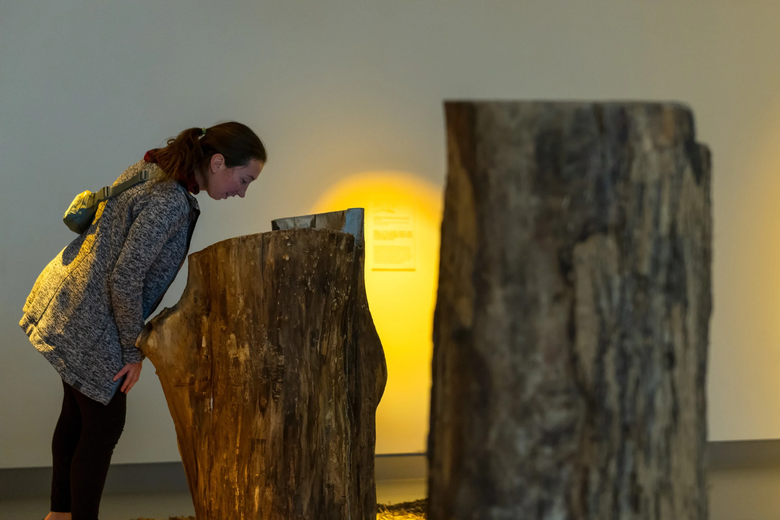 S'appuyant sur une formation en ingénierie, en travail du bois et en arts visuels, l'œuvre de Trueman pour cette exposition mêle vidéo, son, sculpture cinétique et matériaux naturels de récupération, s'harmonisant pour présenter une perspective non humaine sur les cycles de vie de la forêt. « Voices in a cool wet darkness » métamorphose la galerie grâce à des troncs d'arbres monumentaux et vibrants, des œuvres d'art en mouvement et aux sonorités vibrantes, et une vidéo récente offrant un point de vue inédit sur notre paysage commun.