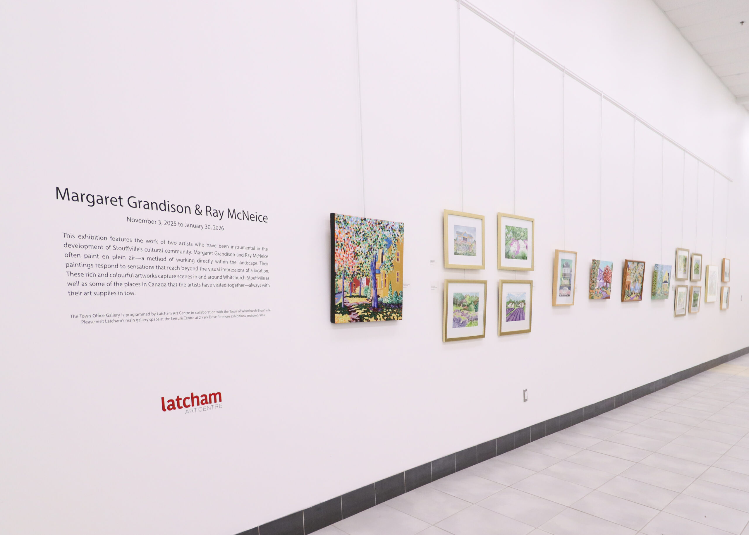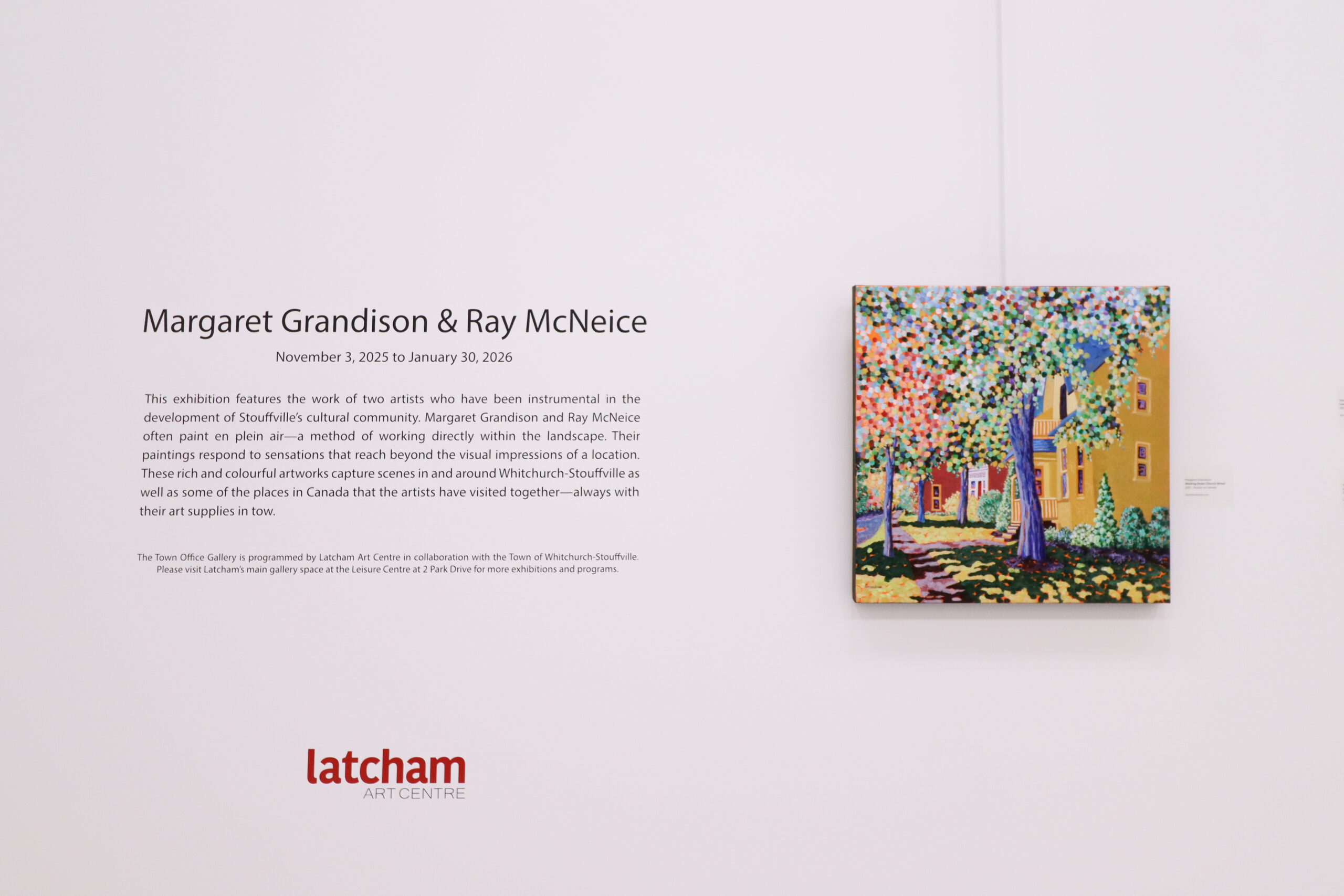 This exhibition features the work of two artists who have been instrumental in the development of Stouffville’s cultural community. Margaret Grandison and Ray McNeice often paint en plein air—a method of working directly within the landscape. Their paintings respond to sensations that reach beyond the visual impressions of a location. These rich and colourful artworks capture scenes in and around Whitchurch-Stouffville as well as some of the places in Canada that the artists have visited together—always with their art supplies in tow.