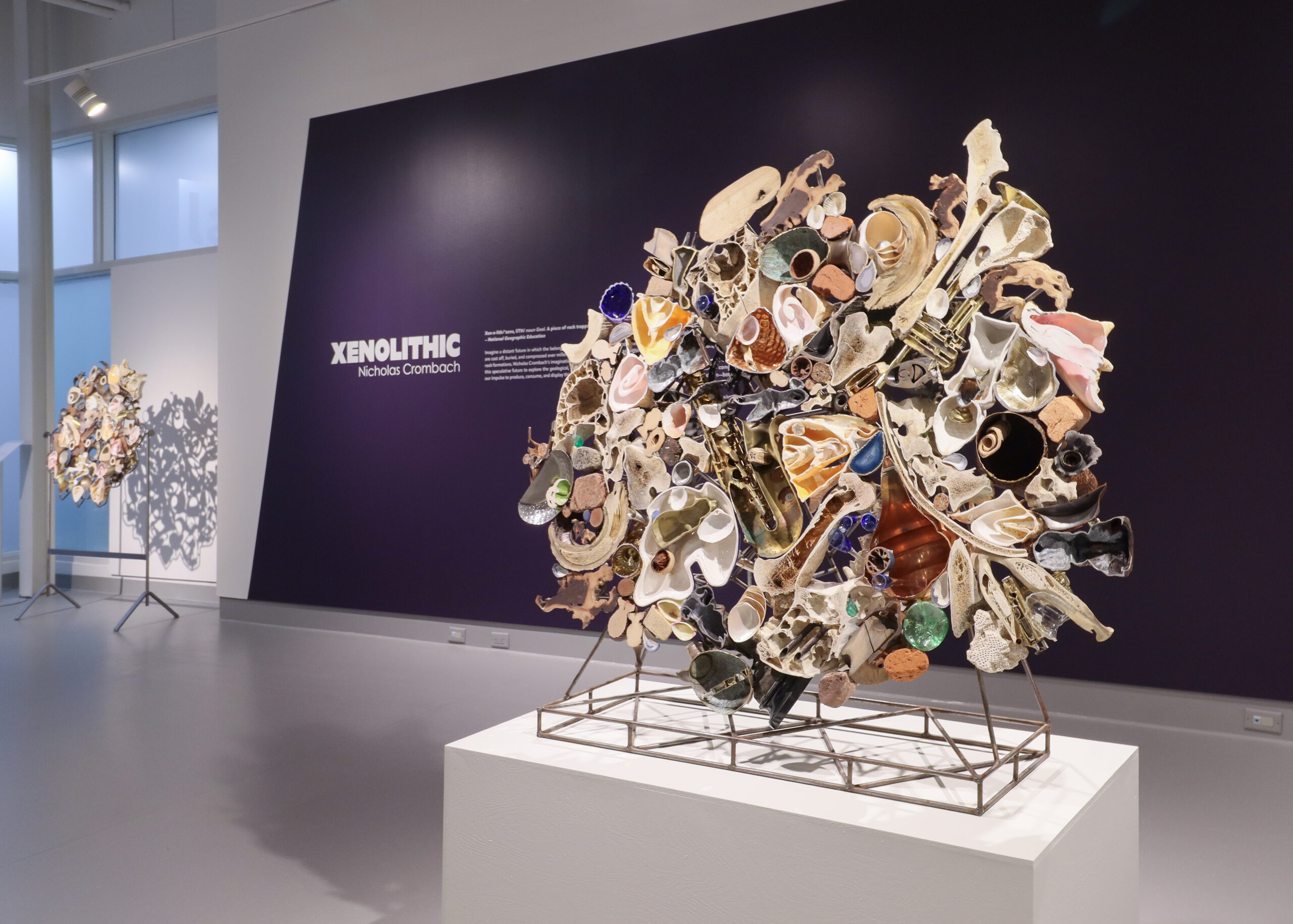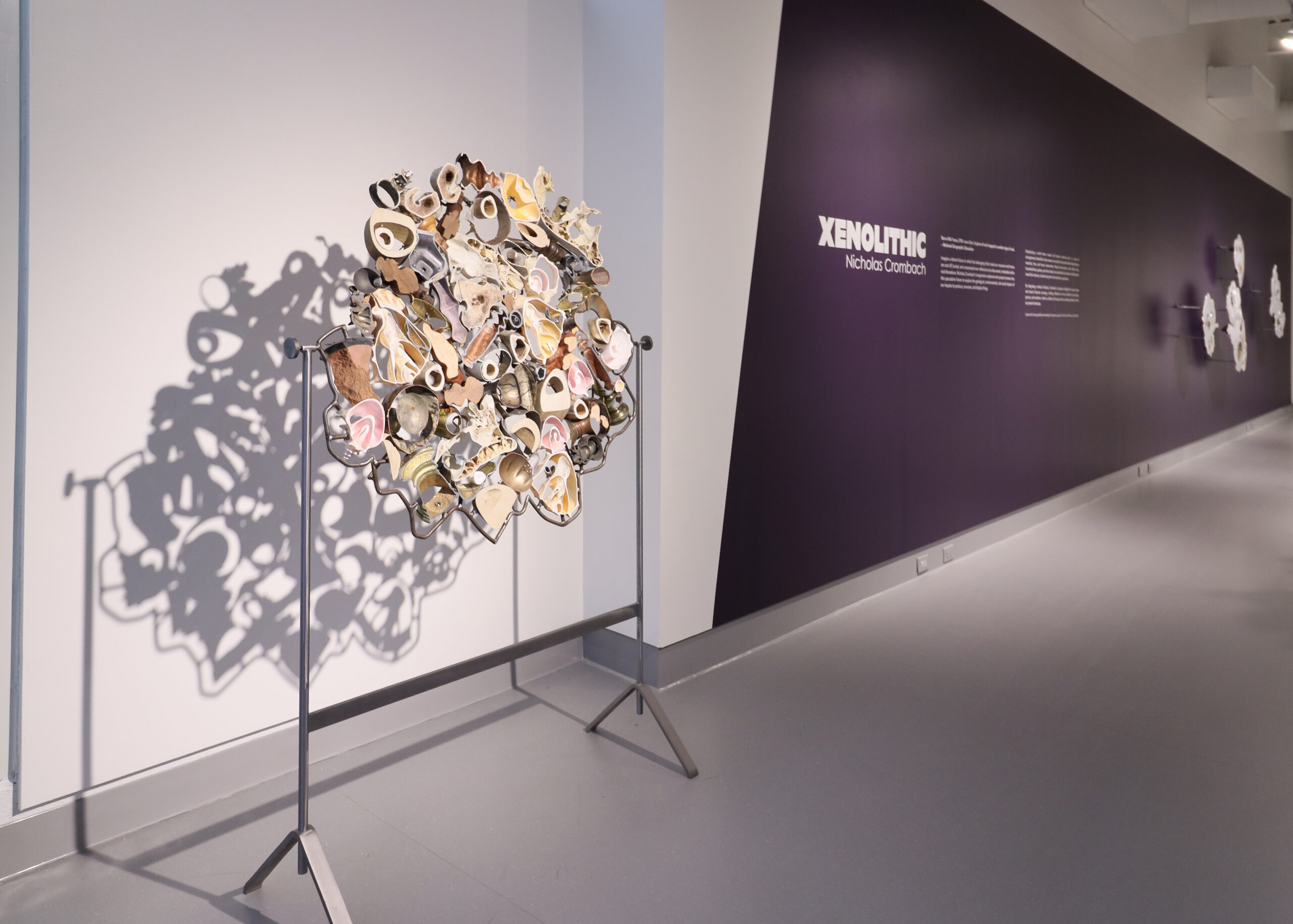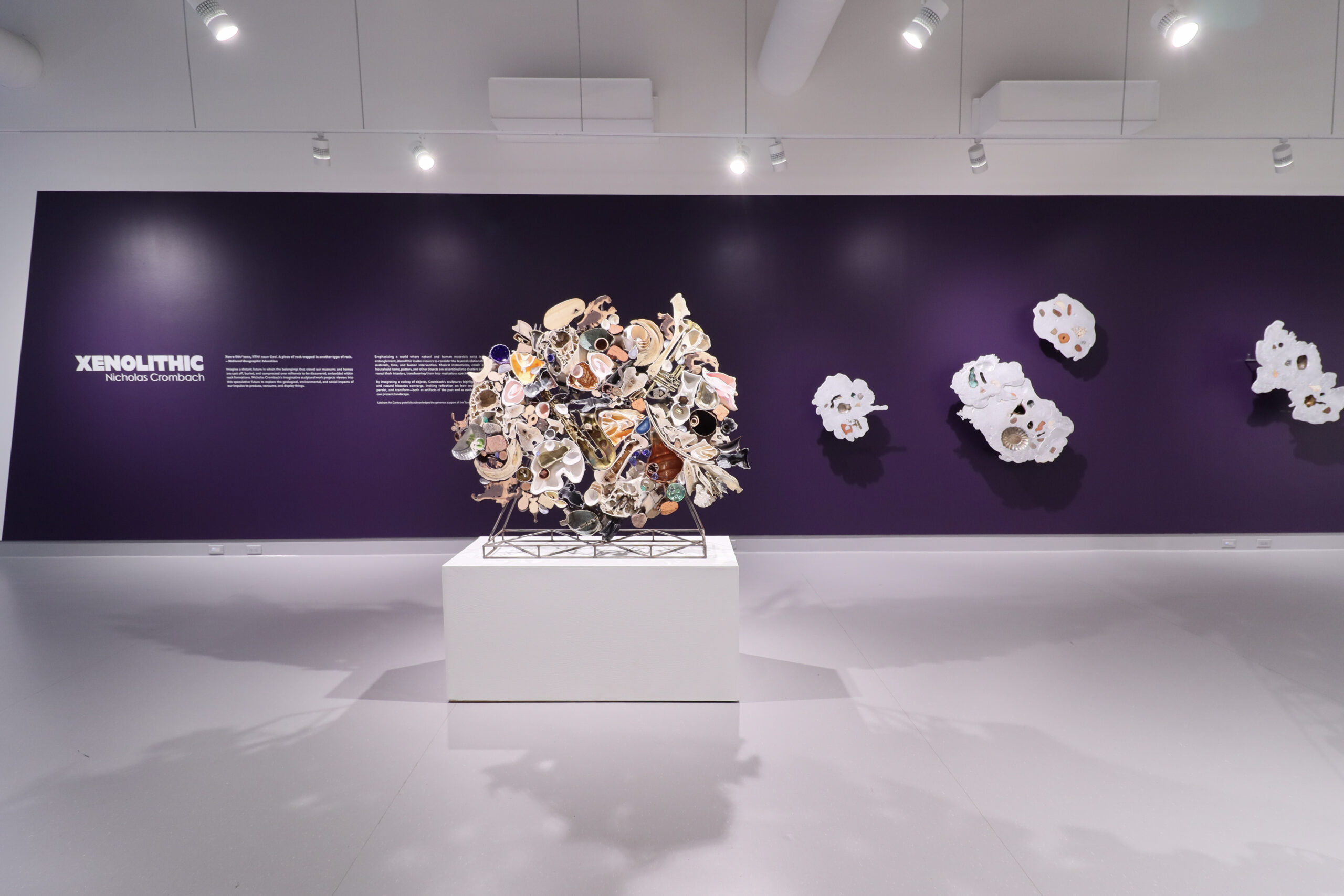 Nicholas Crombach’s sculptural exhibition presents a world where natural and human materials exist in a state of entanglement, inviting viewers to consider how objects accumulate, persist, and transform over time. Each sculpture in Xenolithic combines a range of cross-sectioned objects to provide an innovative perspective on the materials that surround us both as artifacts of the past and as evolving elements within our present landscape.